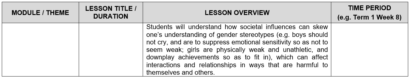 The focus for Sexuality Education at Pre-University is on respectful relationships. Specifically, the JC/MI package covers themes of Interpersonal Relationships, Sexual Health, Sexual Behaviour, and Culture, Society and Law woven into the main focus on relationships.