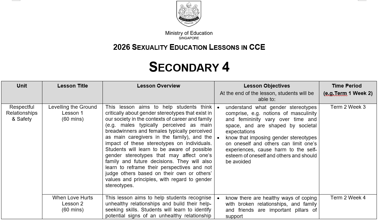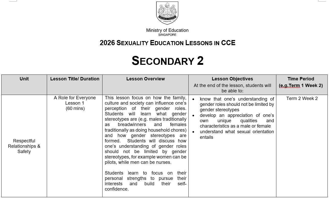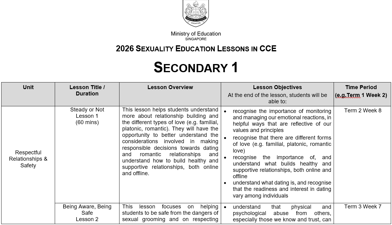 You may click here for more information on MOE Sexuality Education.